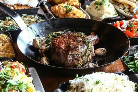 این رستوران که در غذاهای خود فقط از گوشت محلی استفاده کرده و از رستوران‌های حلال در کازان می باشد، اولین خانه استیک حلال در روسیه است. در منوی این رستوران اثری از نوشیدنی‌های الکلی و قلیان دیده نمی‌شود و در عوض انواع سالادها (سزار، گریل با قارچ شیرین، پنیر فتا و …)، انواع سوپ‌ها، برگرهای محلی، استیک و سبزیجات گریل شده و … به چشم می‌خورد. غذاهای این رستوران عموما با گوشت بوقلمون، گاو، مرغ، اردک و گوسفند تهیه می‌شوند. برای جلب بیشتر اعتماد مشتریان غذاهای این رستوران در معرض دید پخته می‎شوند.